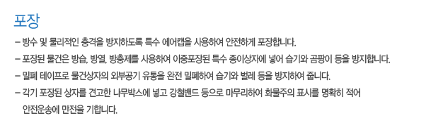 | À¯¸® ¹× ¾×ÀÚ | Ư¼ö ÀÚÀç·Î »óÅ¿¡ µû¶ó °³º°Æ÷ÀåÀ» ÇÏ¿© ó¸® ÇÕ´Ï´Ù. |